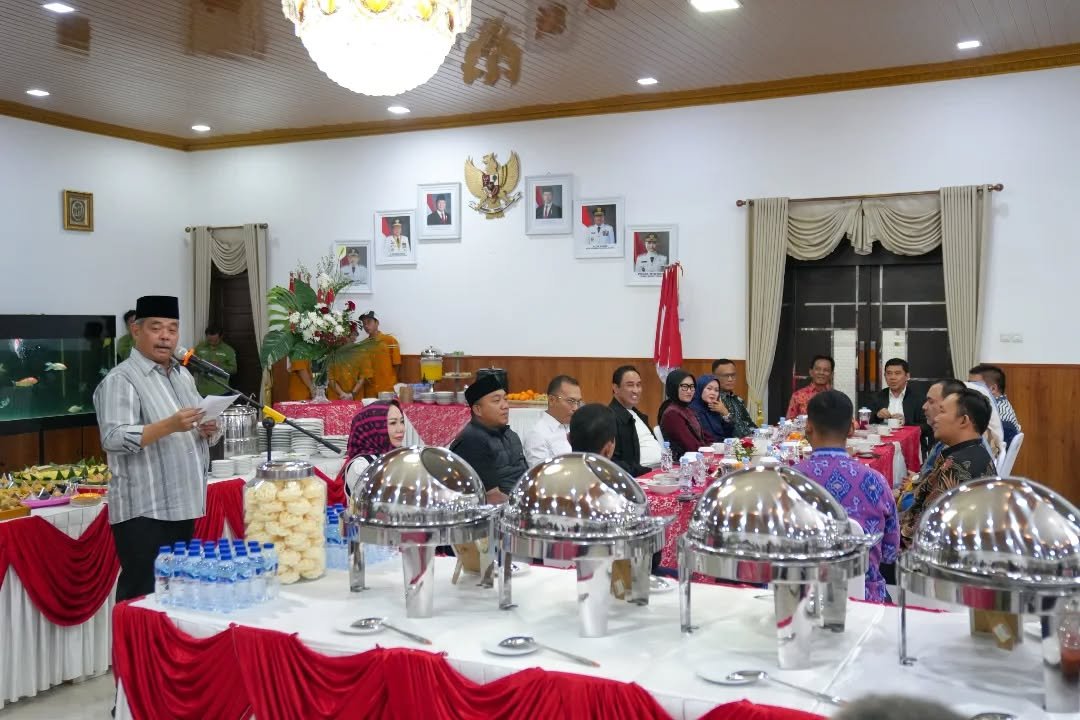 KMP – LAHAT – Bupati Lahat Bursah Zarnubi didampingi Wakil Bupati Lahat Widia Ningsih, SH, MH bersama pimpinan DPRD Kabupaten Lahat, unsur Forkopimda, Sekda Lahat, staf ahli, asisten, serta jajaran OPD menggelar makan malam dan ramah tamah bersama Kepala Badan Narkotika Nasional (BNN) Republik Indonesia Irjen Pol.Suyudi Ario Seto, SH, SIK, MSi beserta rombongan di Pendopoan Rumah Dinas Bupati Lahat, Rabu (21/01/2026).