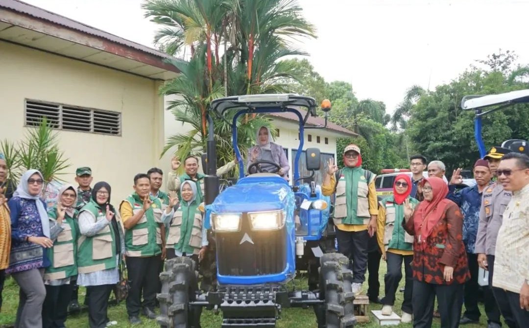 Bupati Musi Rawas Hj. Ratna Machmud Menyerakan Bantuan Alsintan Prapanen Traktor Roda 4 dan Traktor Roda 2