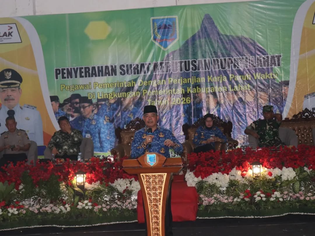 Bupati Lahat menegaskan agar seluruh PPPK yang telah diangkat mampu menjaga integritas, loyalitas, serta berkontribusi nyata dalam mendukung program pembangunan daerah demi terwujudnya Kabupaten Lahat yang lebih maju dan sejahtera.