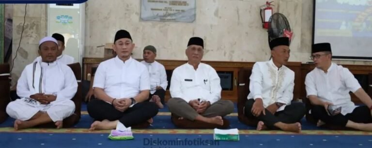 KMP – LUBUK LINGGAU – Wali Kota Lubuk Linggau, H. Rachmat Hidayat melaksanakan sholat Isya dan Tarawih bersama jajaran Pemerintah Kota Lubuk Linggau di Masjid Jami’ At Taqwa, Kelurahan Eka Marga, Kecamatan Lubuk Linggau Selatan II, Jumat (20/2/2026).